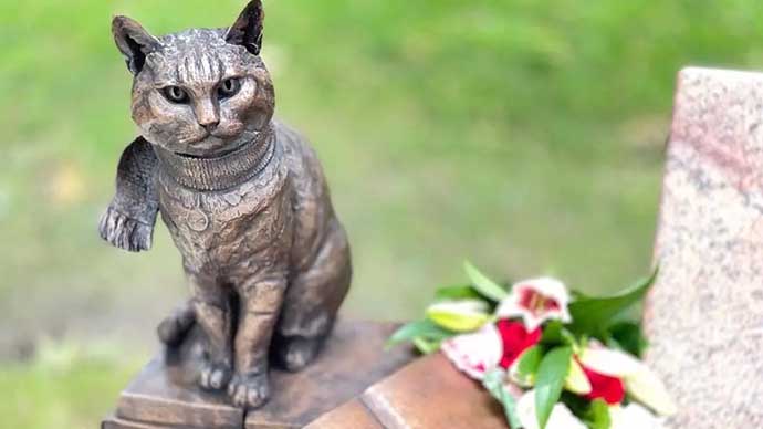 Uma estátua em tamanho natural do gato usando seu famoso cachecol foi inaugurada em Islington Green, em 2021.