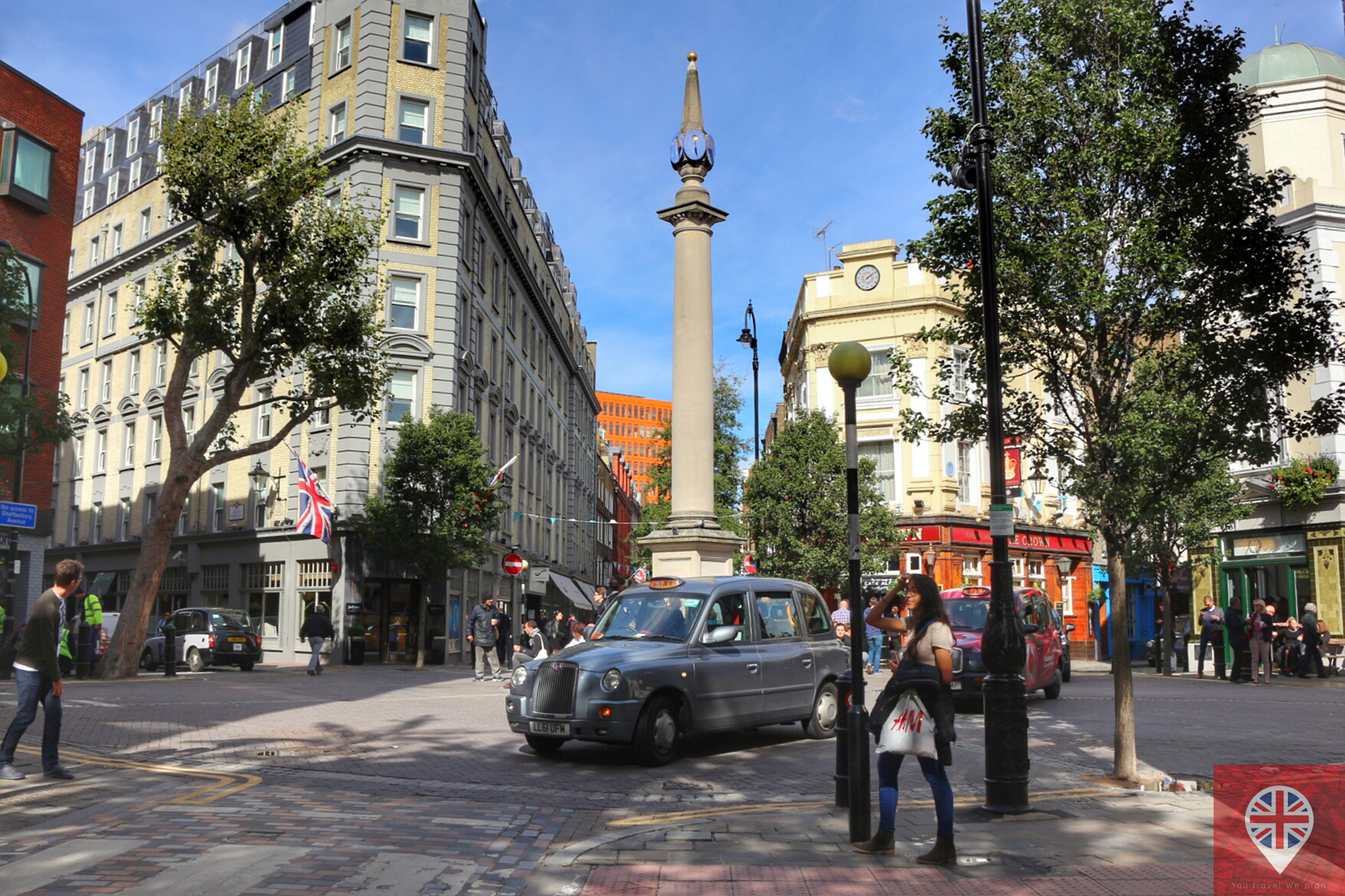 Seven Dials é a junção de sete ruas, em Covent Garden, partindo de uma pequena praça circular. O pilar no meio da praça tem seis relógios de sol (sundials) porque foi encomendado antes da alteração do plano original.